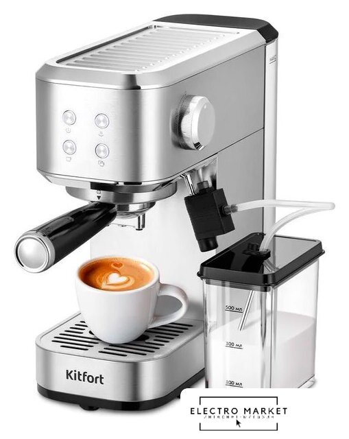 1400 Вт, корпус металл, капучинатор ручной, используемый кофе: молотый, цвет нержавеющая сталь