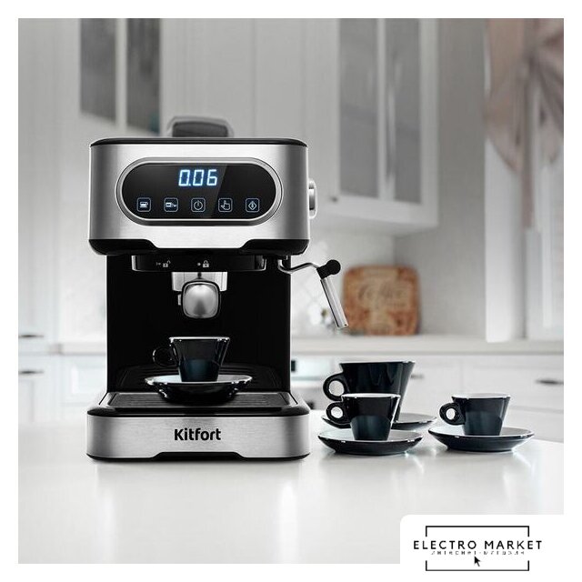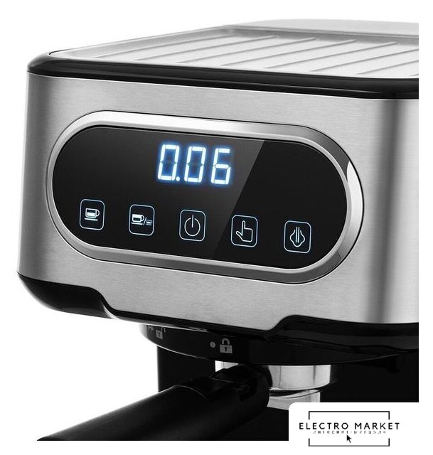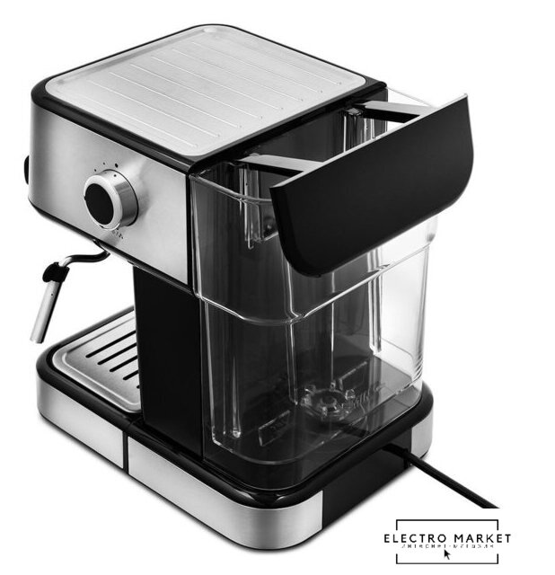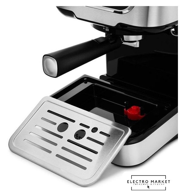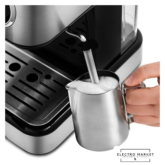 рожковая помповая кофеварка, 1500 Вт, корпус металл/пластик, капучинатор автоматический, используемый кофе: молотый, цвет нержавеющая сталь/черный