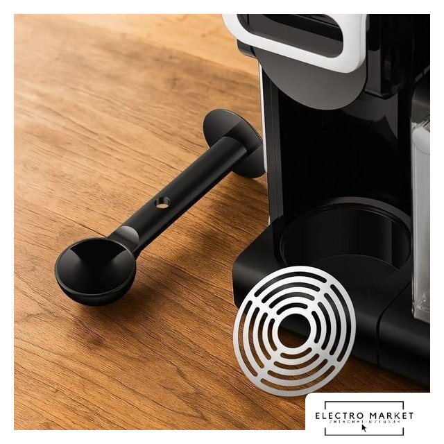 1450 Вт, корпус металл/пластик, капучинатор ручной, используемый кофе: молотый, цвет белый