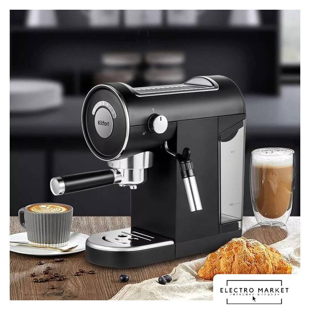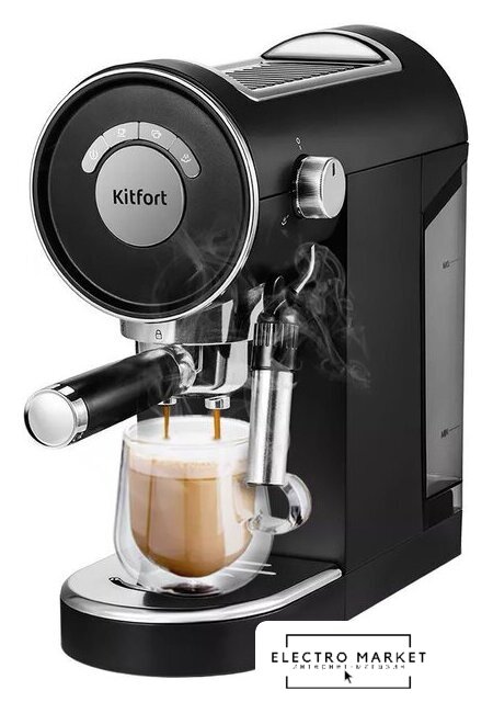 1400 Вт, корпус металл/пластик, капучинатор ручной, используемый кофе: молотый, цвет черный