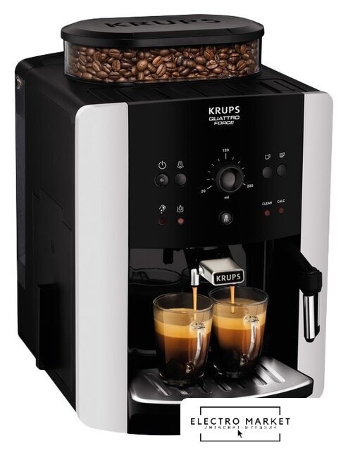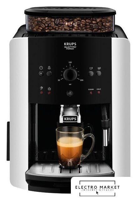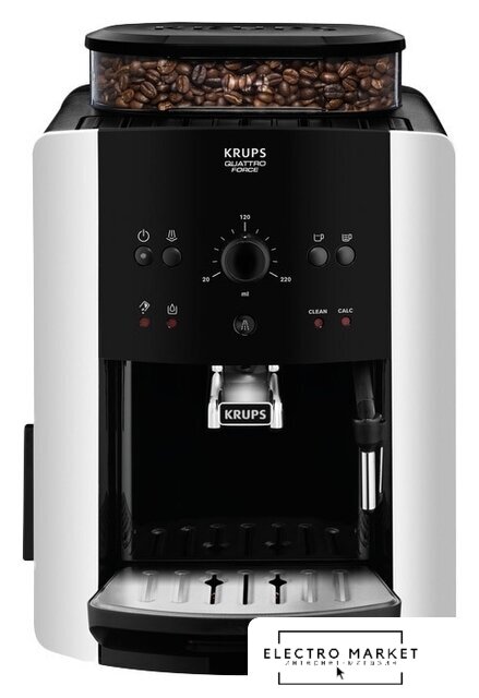 кофемашина, 1450 Вт, корпус пластик, капучинатор автоматический, используемый кофе: молотый/зерновой, цвет белый