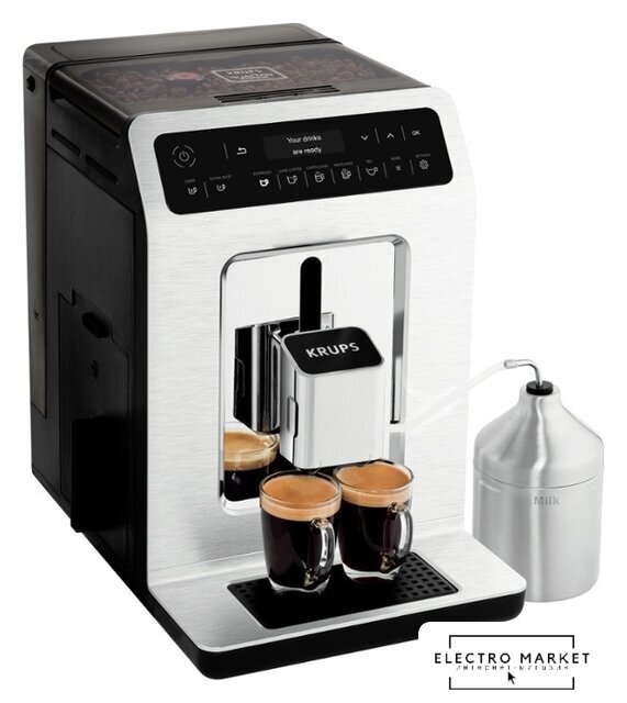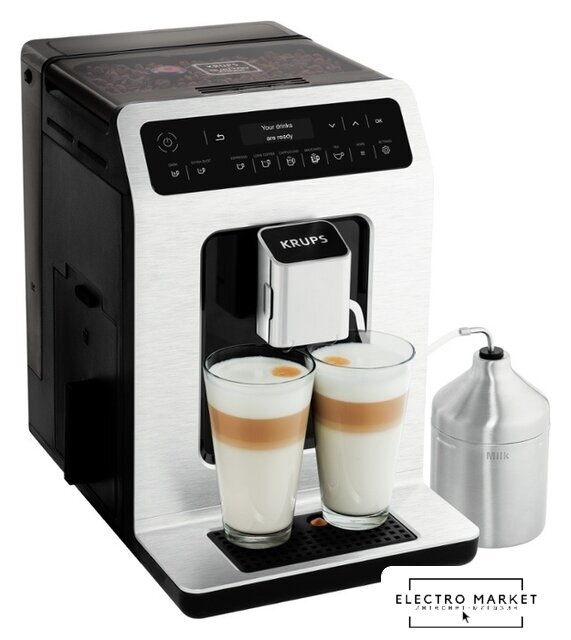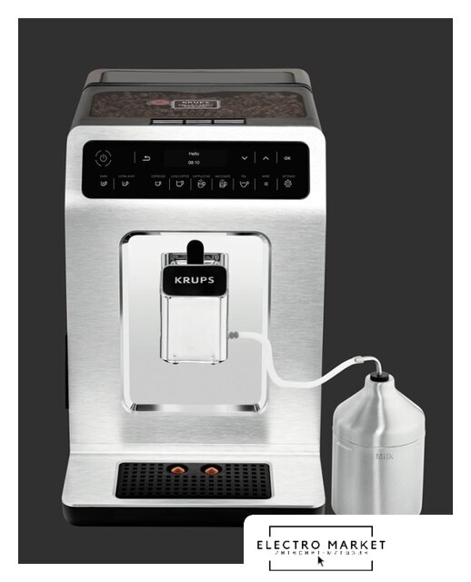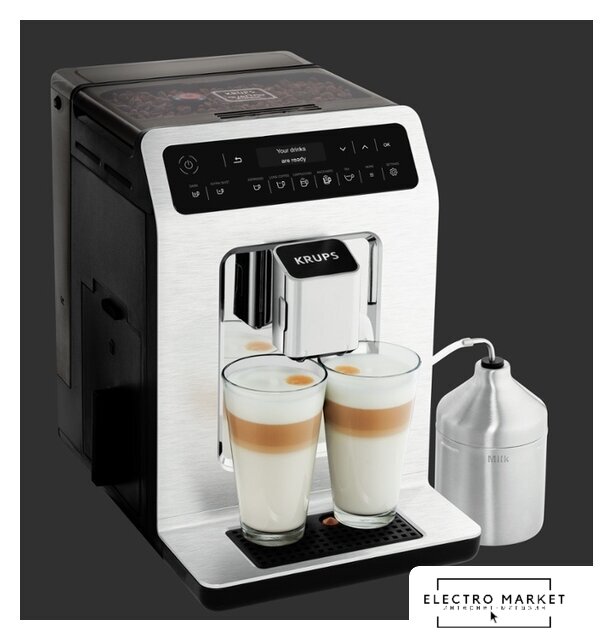 кофемашина, 1500 Вт, корпус пластик, капучинатор автоматический, используемый кофе: молотый/зерновой, цвет серебристый/черный