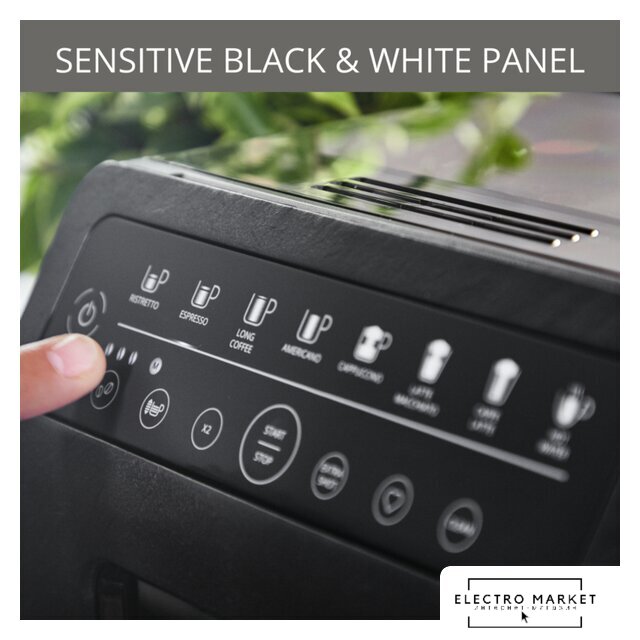 кофемашина, 1450 Вт, корпус пластик, капучинатор автоматический, используемый кофе: молотый/зерновой, цвет черный