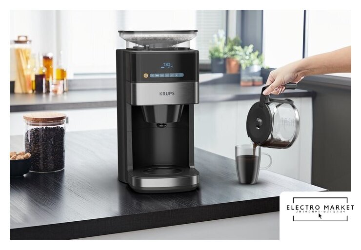 капельная кофеварка, 1080 Вт, корпус металл/пластик, используемый кофе: молотый/зерновой, цвет нержавеющая сталь/черный