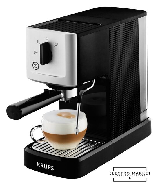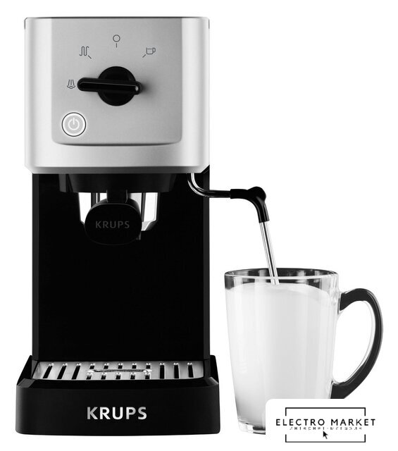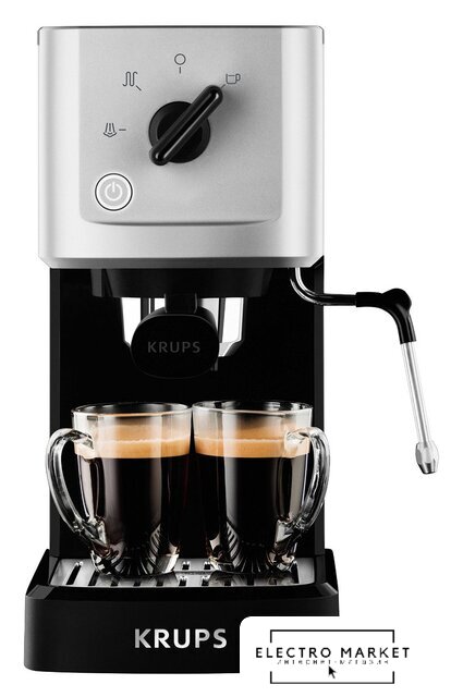 1350 Вт, корпус металл/пластик, капучинатор ручной, используемый кофе: молотый, цвет нержавеющая сталь/серебристый