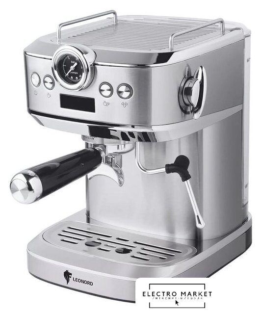 1350 Вт, корпус металл/пластик, капучинатор автоматический, используемый кофе: молотый, цвет серебристый/черный