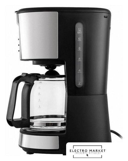 капельная кофеварка, корпус пластик, используемый кофе: молотый, цвет нержавеющая сталь/черный