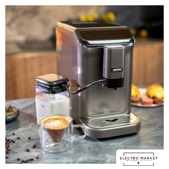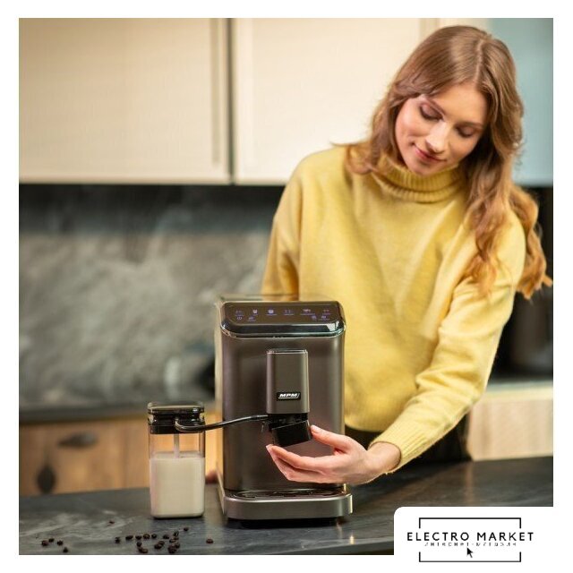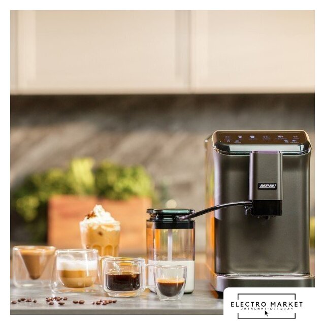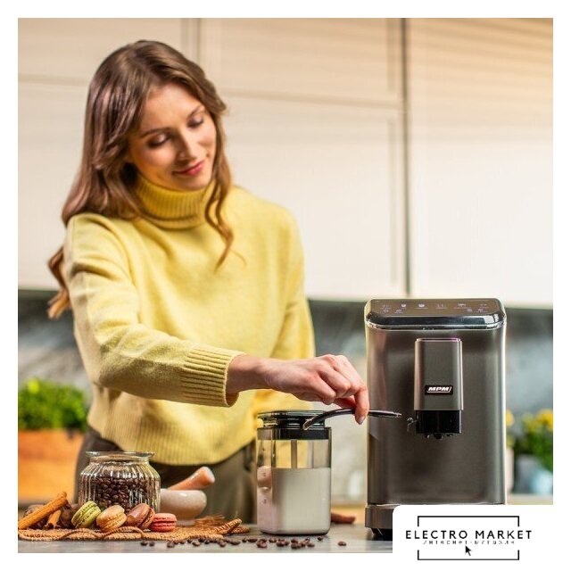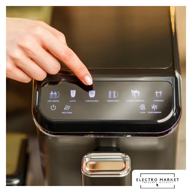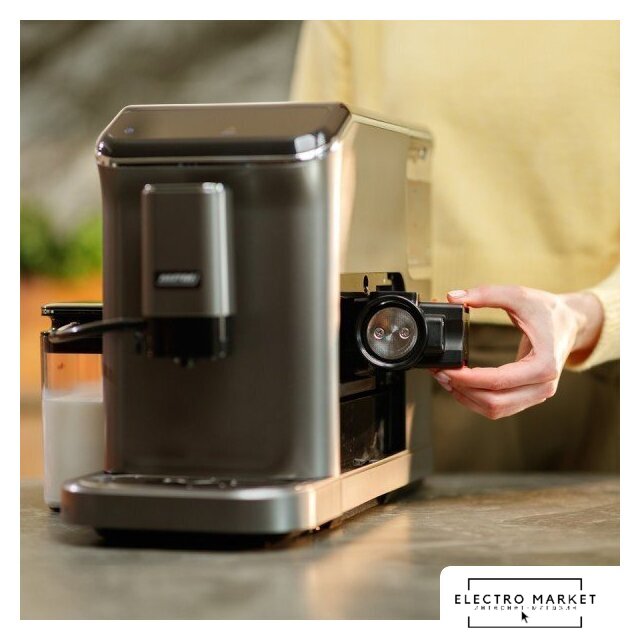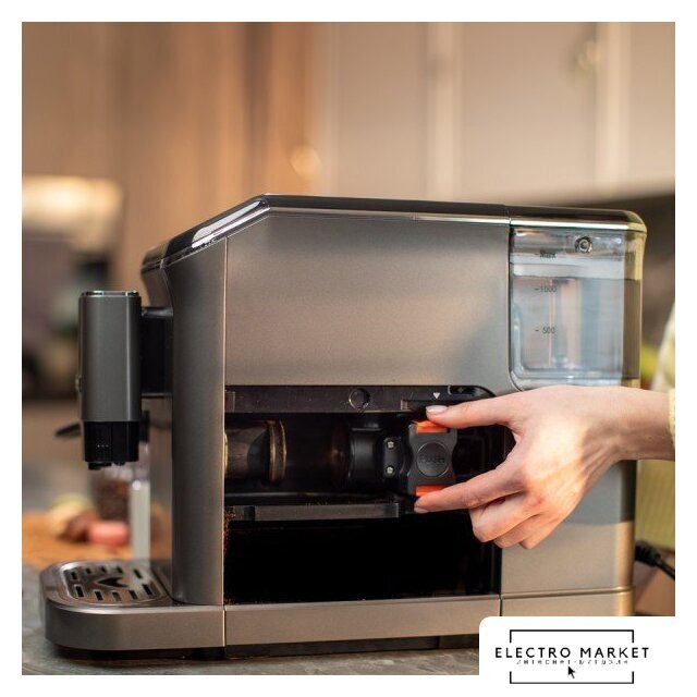 кофемашина, 1450 Вт, корпус пластик, капучинатор автоматический, используемый кофе: молотый/зерновой, цвет титан/черный