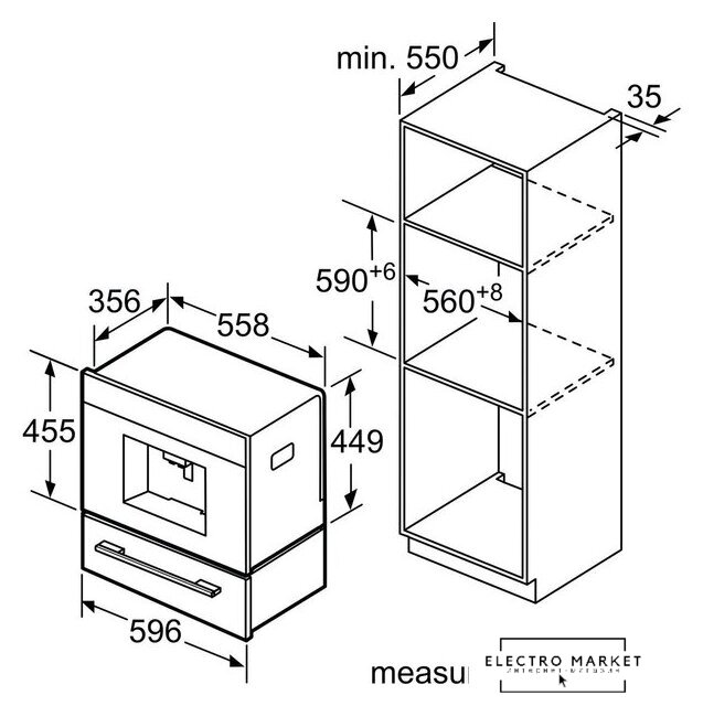 кофемашина, встраиваемая, 1350 Вт, корпус стекло, капучинатор автоматический (двойной капучино), используемый кофе: зерновой/молотый, цвет нержавеющая сталь/черный