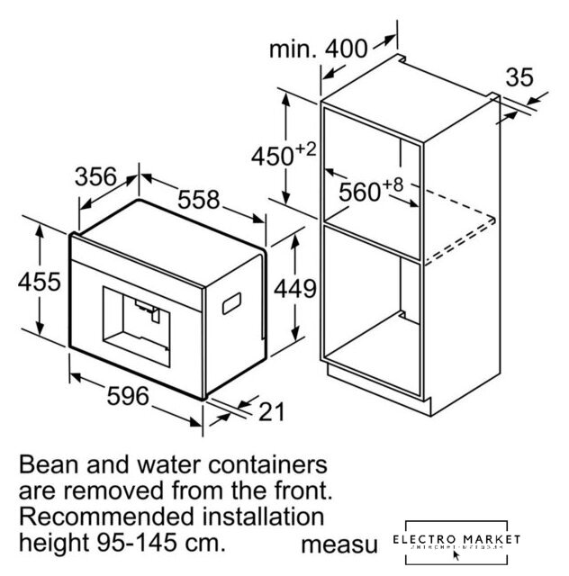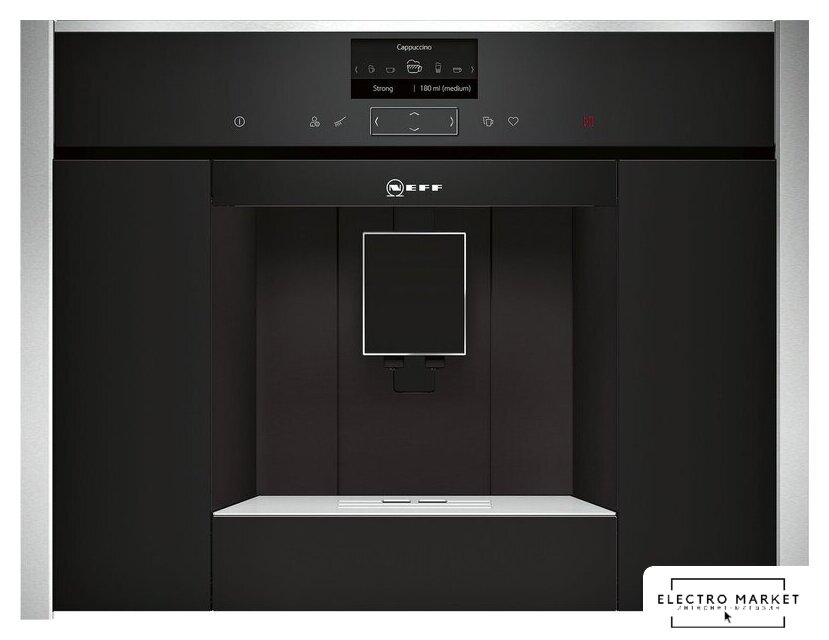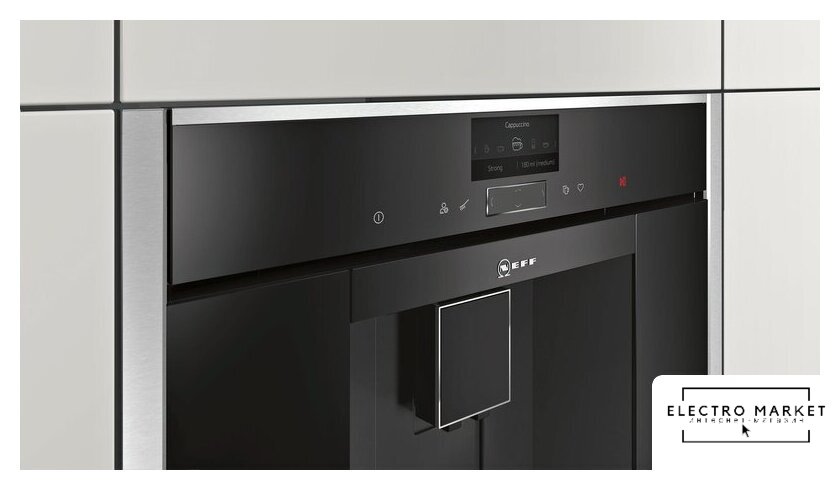 встраиваемая, 1600 Вт, корпус металл, капучинатор автоматический, используемый кофе: молотый/зерновой, цвет нержавеющая сталь/черный