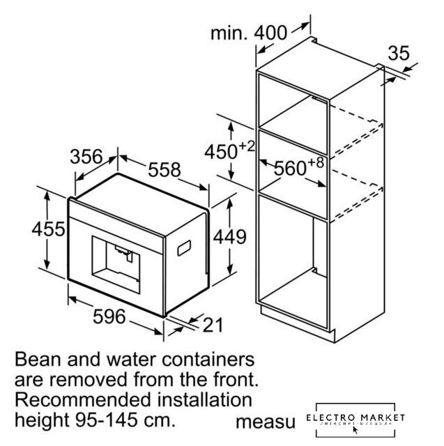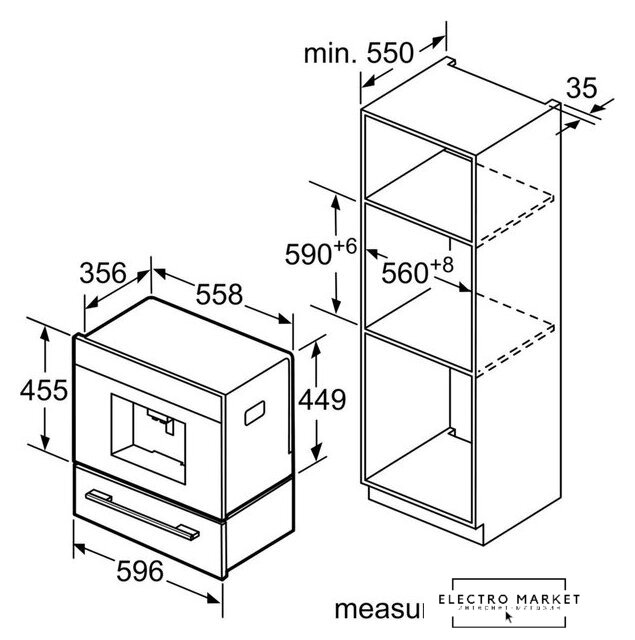встраиваемая, 1600 Вт, корпус металл, капучинатор автоматический, используемый кофе: молотый/зерновой, цвет серебристый/черный