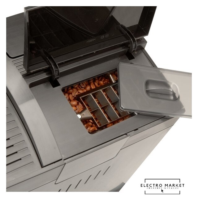кофемашина, 1450 Вт, корпус пластик, капучинатор автоматический, используемый кофе: молотый/зерновой, цвет серебристый/черный