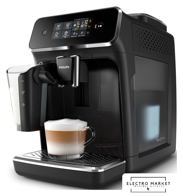 кофемашина, 1500 Вт, корпус пластик, капучинатор автоматический, используемый кофе: молотый/зерновой, цвет черный