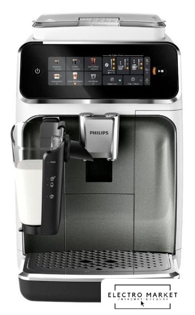 кофемашина, 1500 Вт, корпус пластик, капучинатор автоматический, используемый кофе: молотый/зерновой, цвет белый/серебристый