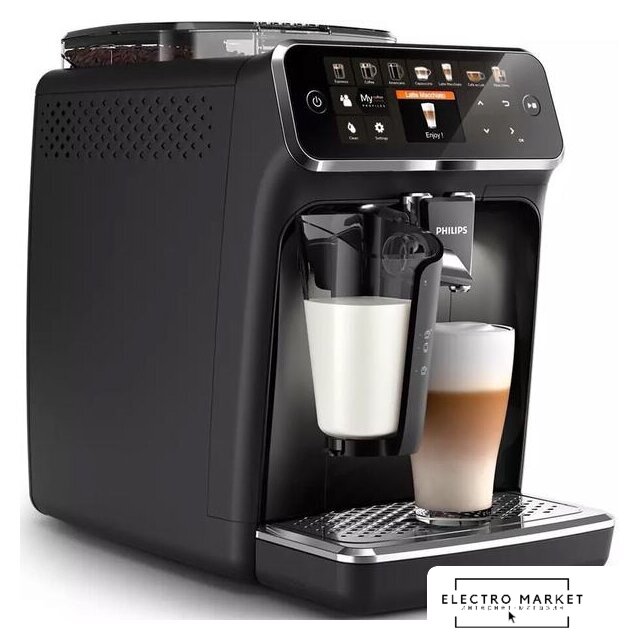 кофемашина, 1500 Вт, корпус пластик, капучинатор автоматический, используемый кофе: молотый/зерновой, цвет серебристый/черный