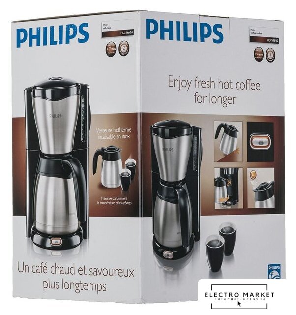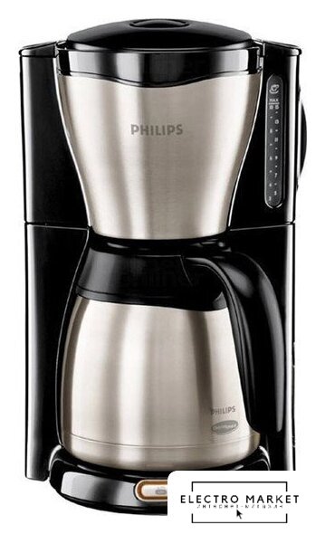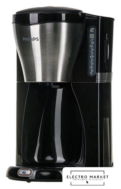 капельная кофеварка, корпус пластик, используемый кофе: молотый, цвет нержавеющая сталь/черный