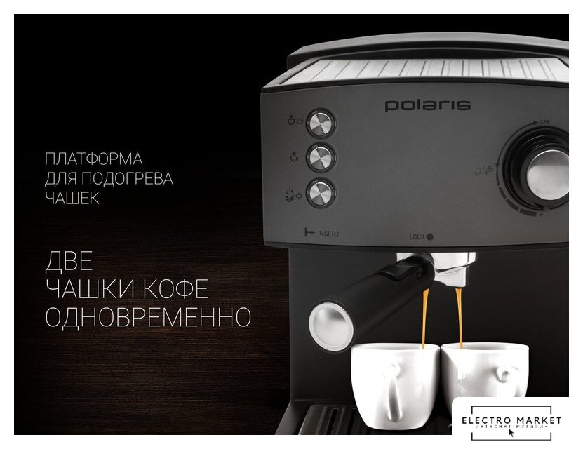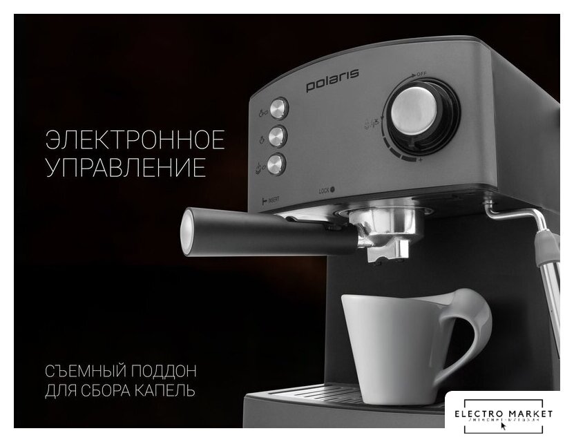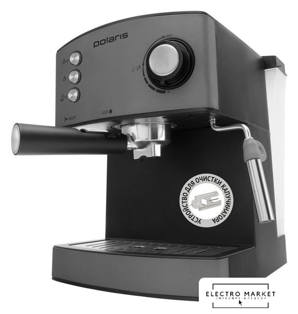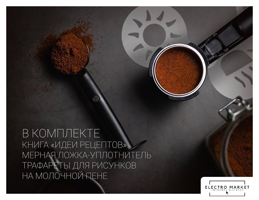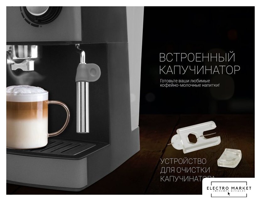 1400 Вт, корпус металл/пластик, капучинатор ручной, используемый кофе: молотый, цвет черный