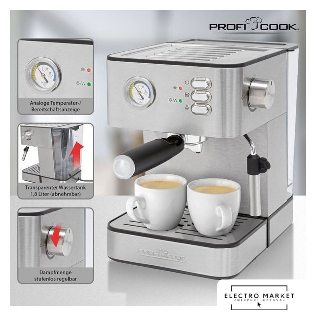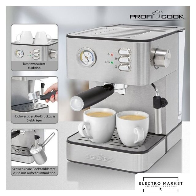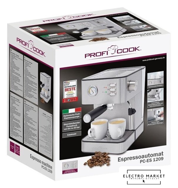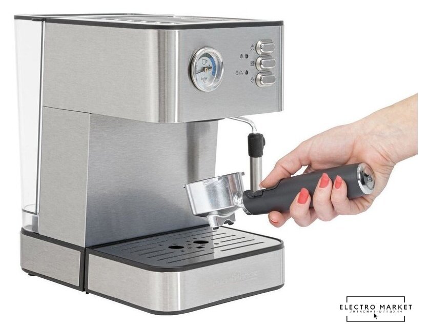рожковая помповая кофеварка, 1500 Вт, корпус пластик, капучинатор автоматический, используемый кофе: молотый, цвет черный