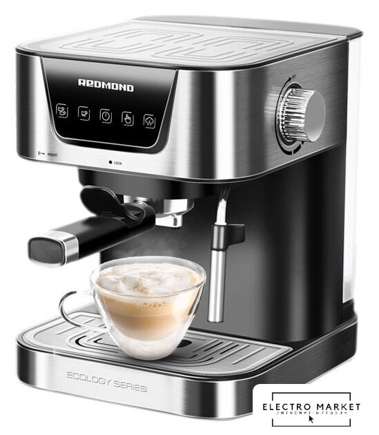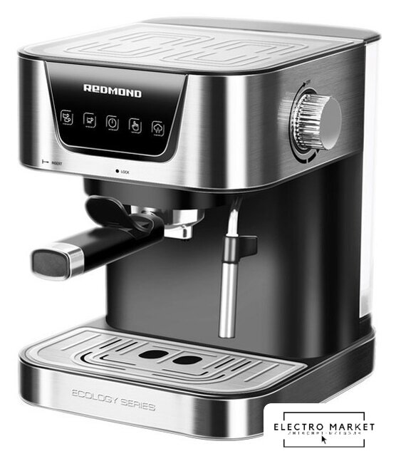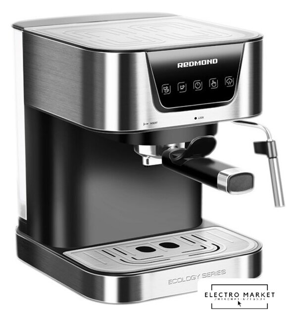 рожковая помповая кофеварка, 1500 Вт, корпус металл/пластик, капучинатор автоматический, используемый кофе: молотый, цвет нержавеющая сталь/черный