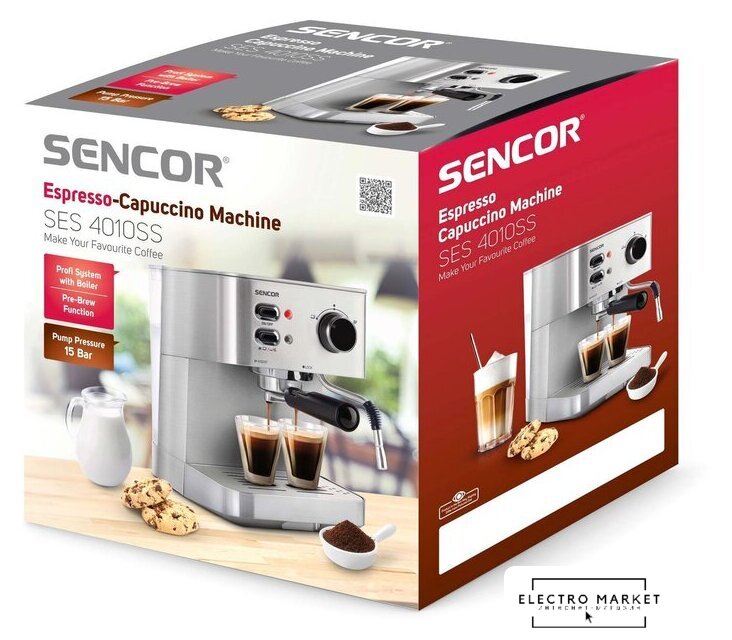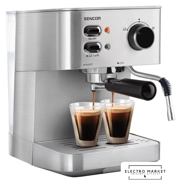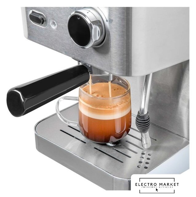 рожковая помповая кофеварка, 1360 Вт, корпус металл/пластик, капучинатор ручной, используемый кофе: молотый, цвет нержавеющая сталь