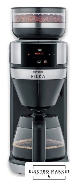 капельная кофеварка, корпус пластик, используемый кофе: молотый/зерновой, цвет серебристый/черный