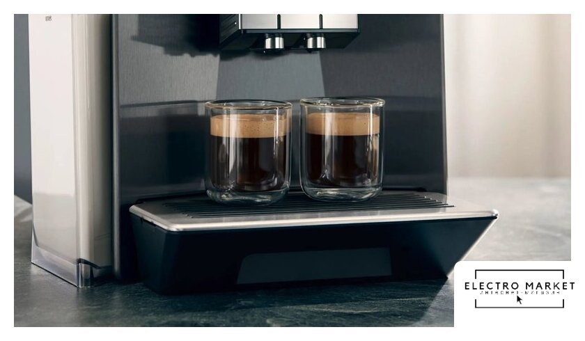 кофемашина, встраиваемая, 1350 Вт, корпус стекло, капучинатор автоматический (двойной капучино), используемый кофе: зерновой/молотый, цвет нержавеющая сталь/черный