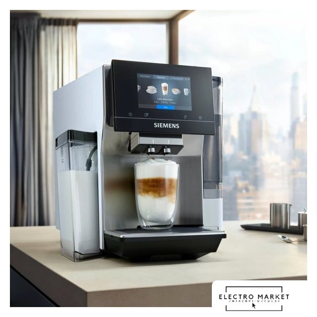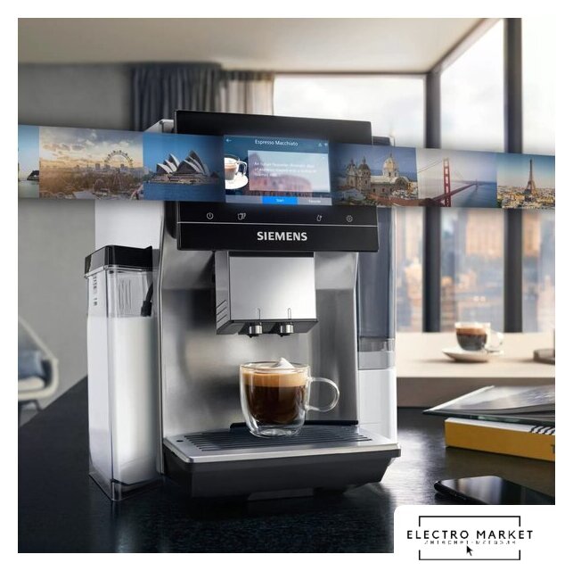 кофемашина, встраиваемая, 1350 Вт, корпус стекло, капучинатор автоматический (двойной капучино), используемый кофе: зерновой/молотый, цвет нержавеющая сталь/черный