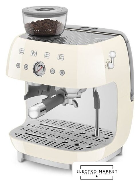 рожковая помповая кофеварка, корпус пластик, используемый кофе: молотый/зерновой, цвет белый