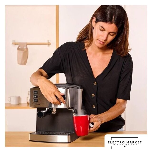 капельная кофеварка/рожковая бойлерная кофеварка, 1850 Вт, корпус металл/пластик, капучинатор ручной, используемый кофе: молотый, цвет нержавеющая сталь/черный