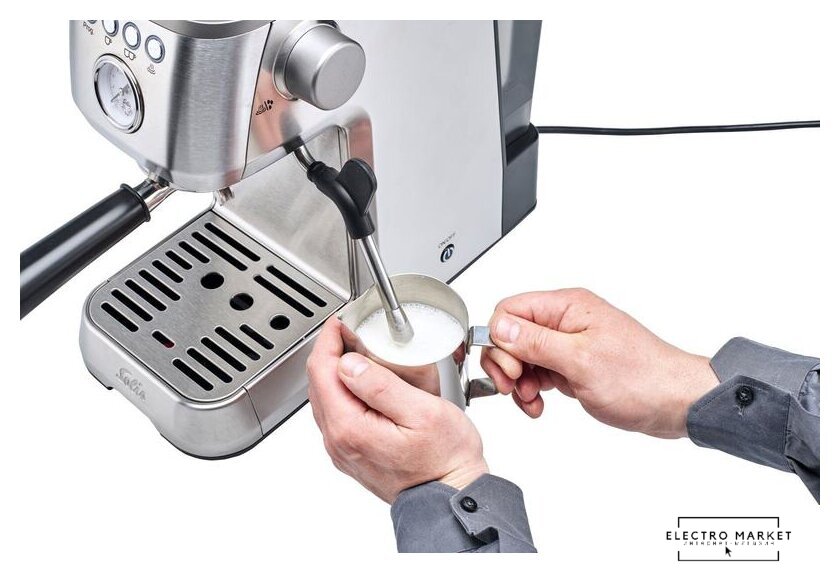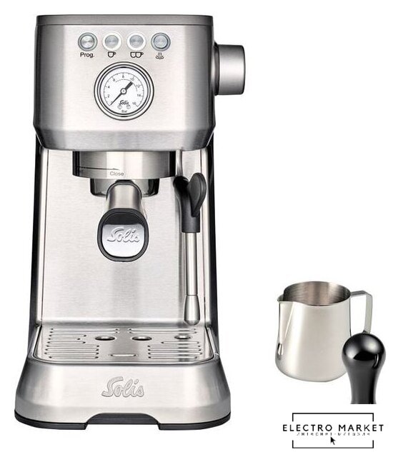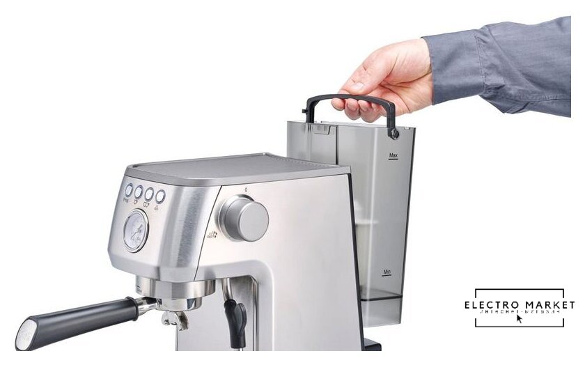 рожковая помповая кофеварка, 1450 Вт, корпус металл, капучинатор ручной, используемый кофе: молотый/зерновой, цвет нержавеющая сталь