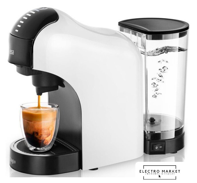 капсульная кофеварка, 1100 Вт, корпус пластик, используемый кофе: молотый/капсулы Nespresso Original/Dolce Gusto, цвет белый/черный