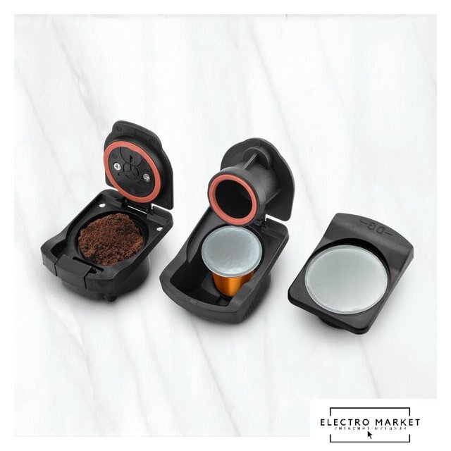 1400 Вт, корпус металл/пластик, используемый кофе: молотый/чалды/капсулы Nespresso Original/Dolce Gusto, цвет нержавеющая сталь/черный