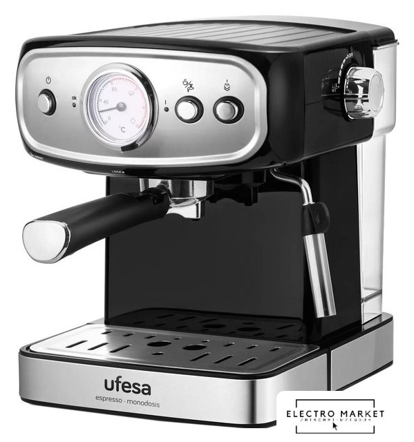 рожковая помповая кофеварка, 1100 Вт, корпус металл/пластик, капучинатор ручной, используемый кофе: молотый, цвет нержавеющая сталь/черный