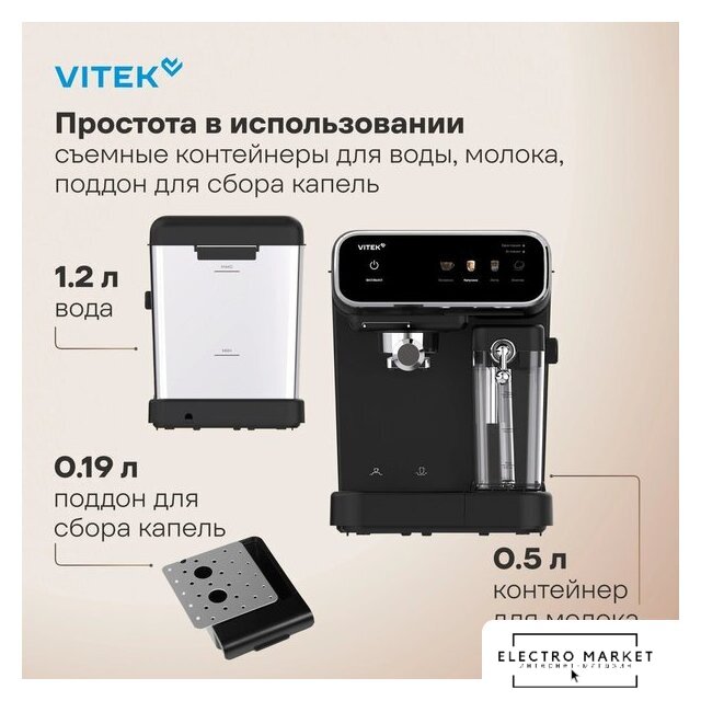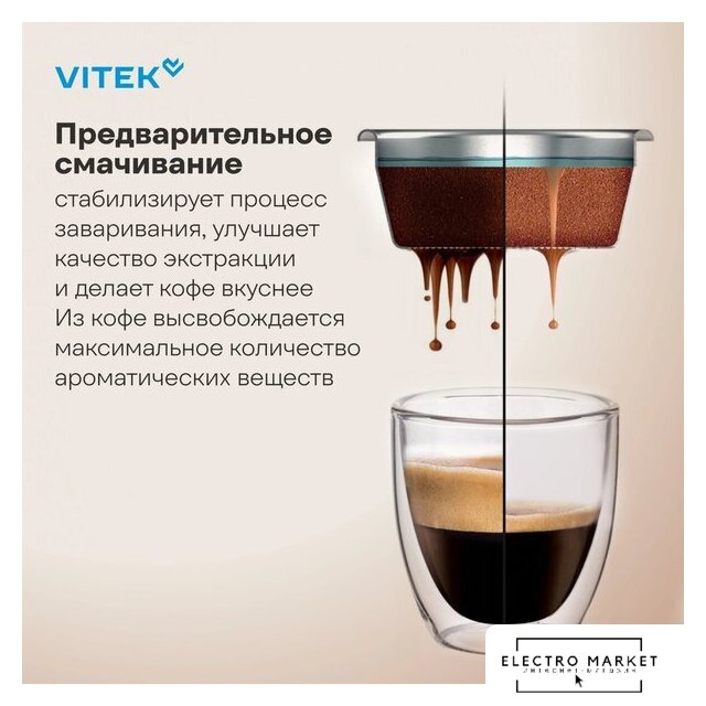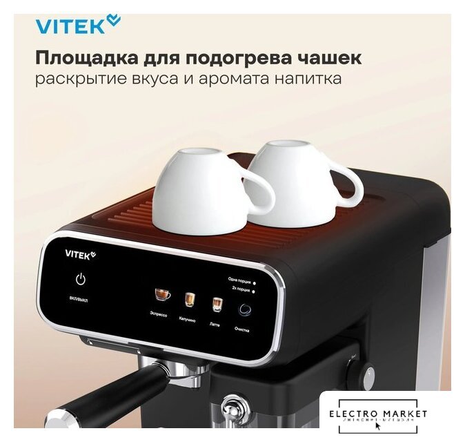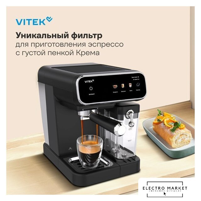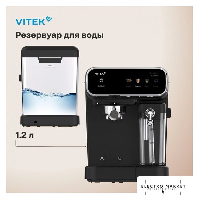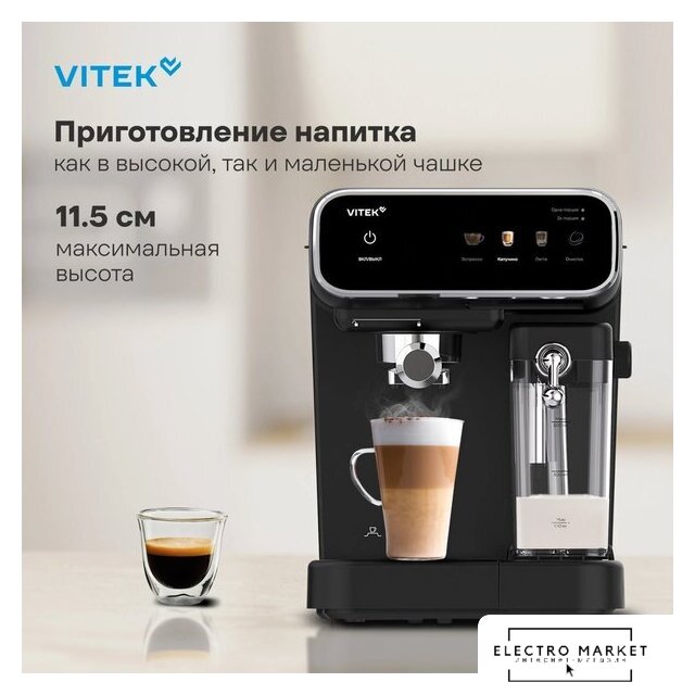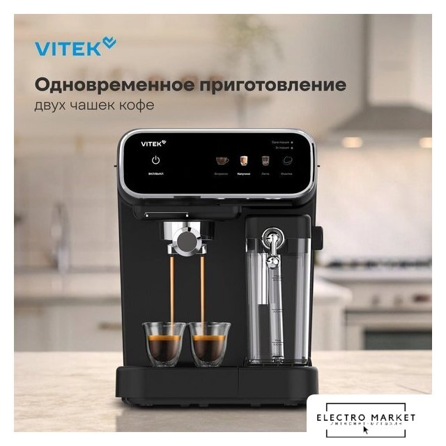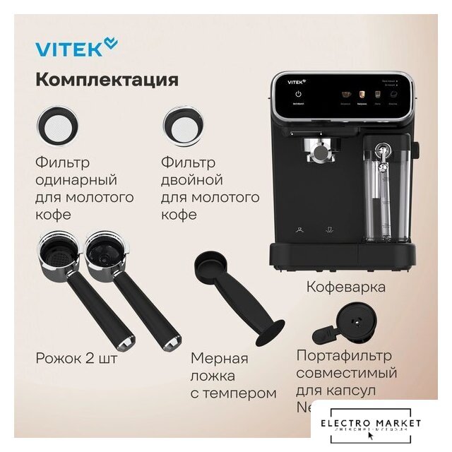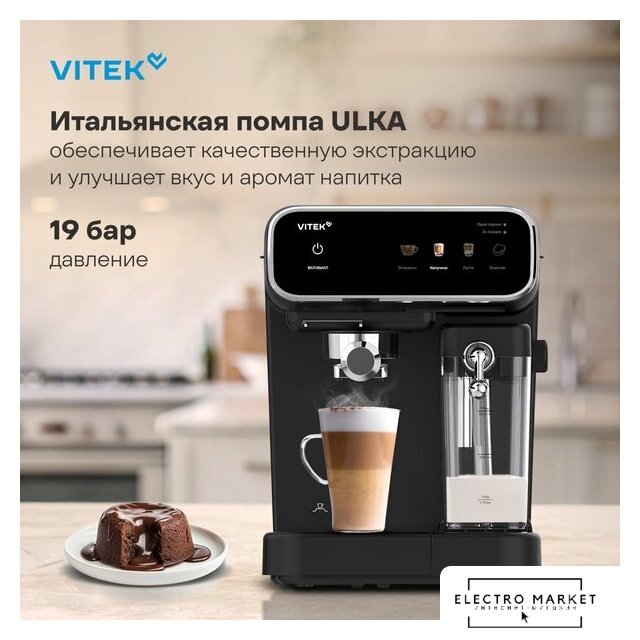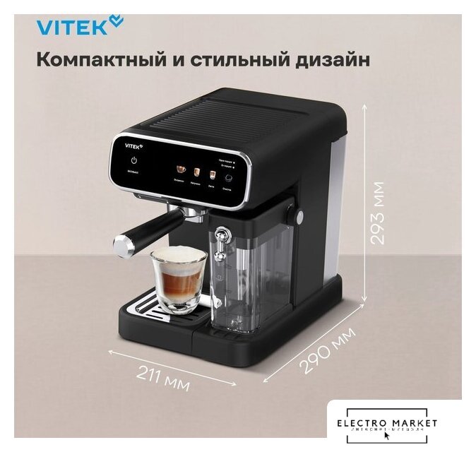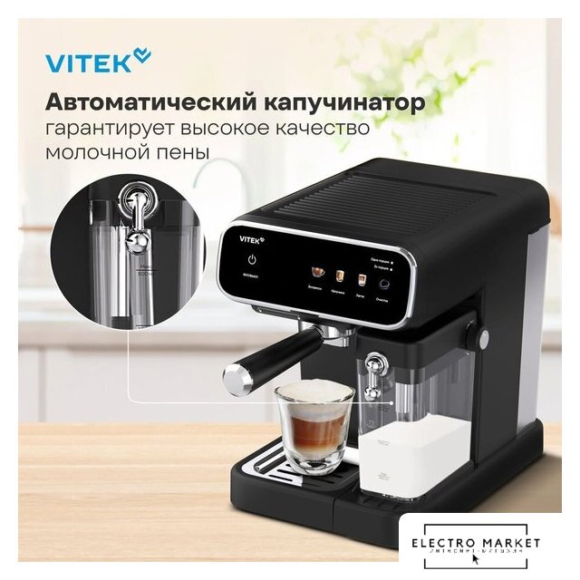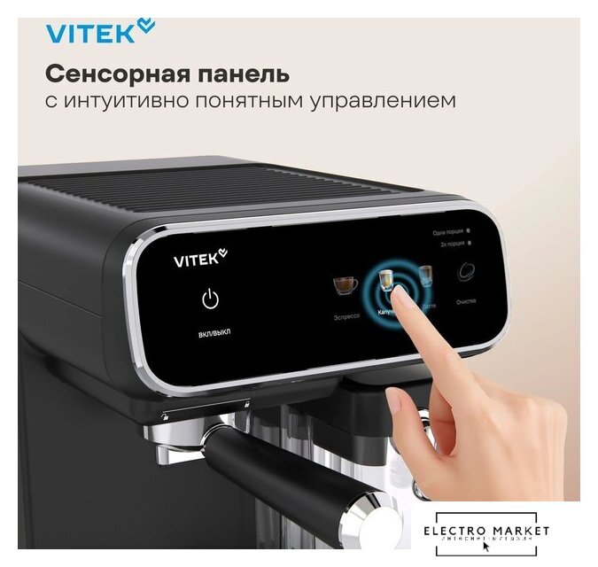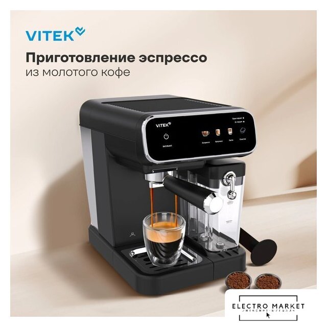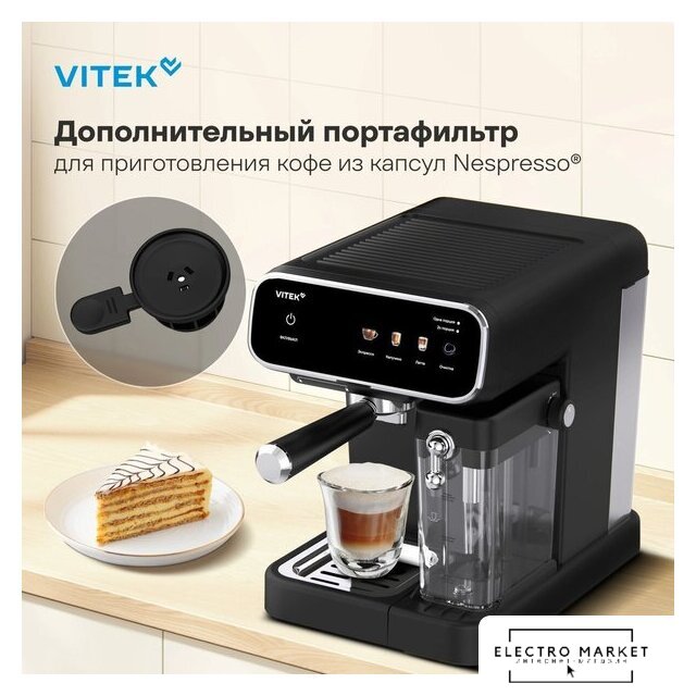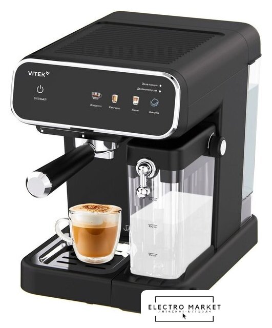 1300 Вт, корпус металл/пластик, капучинатор ручной, используемый кофе: молотый, цвет черный