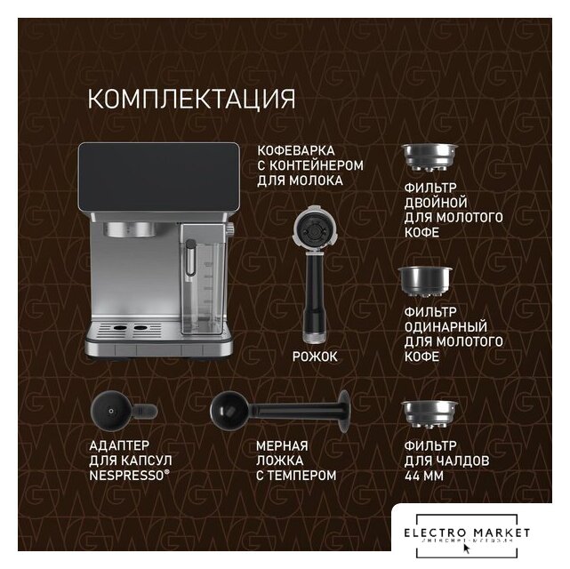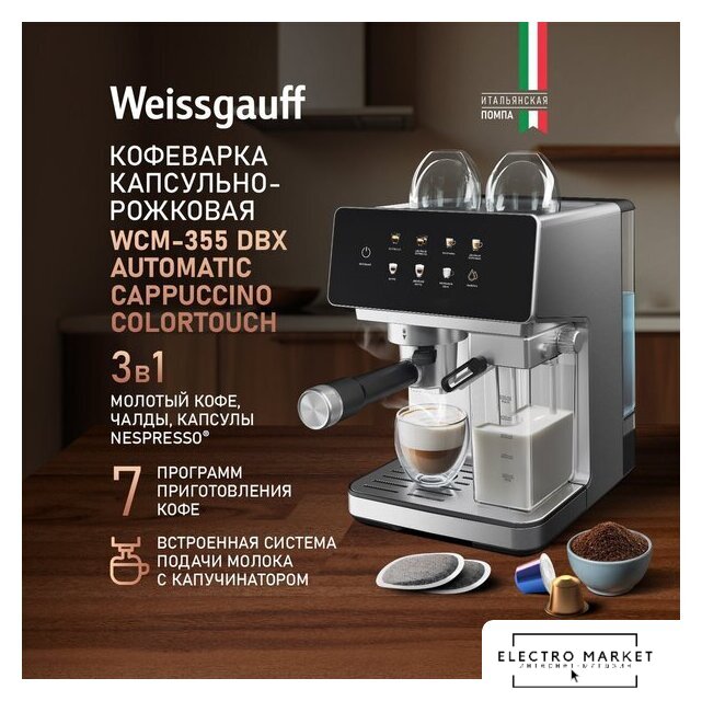 | Тип | рожковая кофеварка, капсульная кофеварка, чалдовая кофеварка |