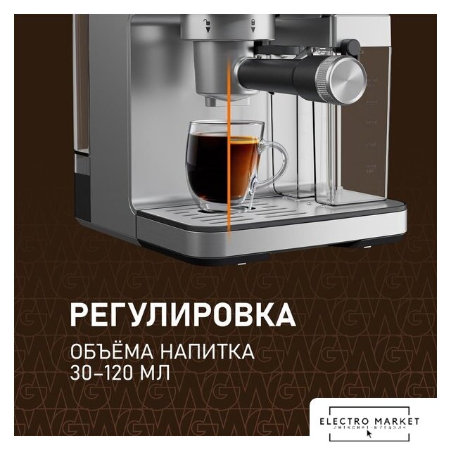 рожковая кофеварка, 1238 Вт, корпус пластик, капучинатор автоматический, используемый кофе: молотый, цвет серый/черный