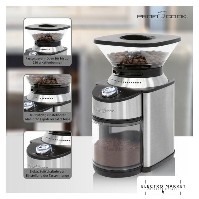150 Вт, контейнер для зерен на 350 г, регулировка степени помола