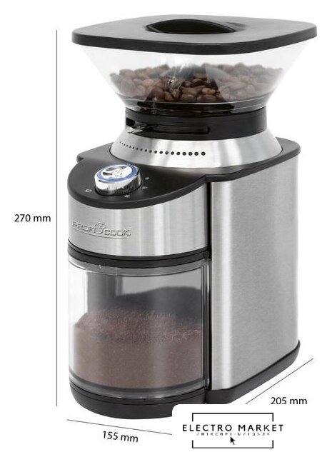 150 Вт, контейнер для зерен на 105 г, регулировка степени помола