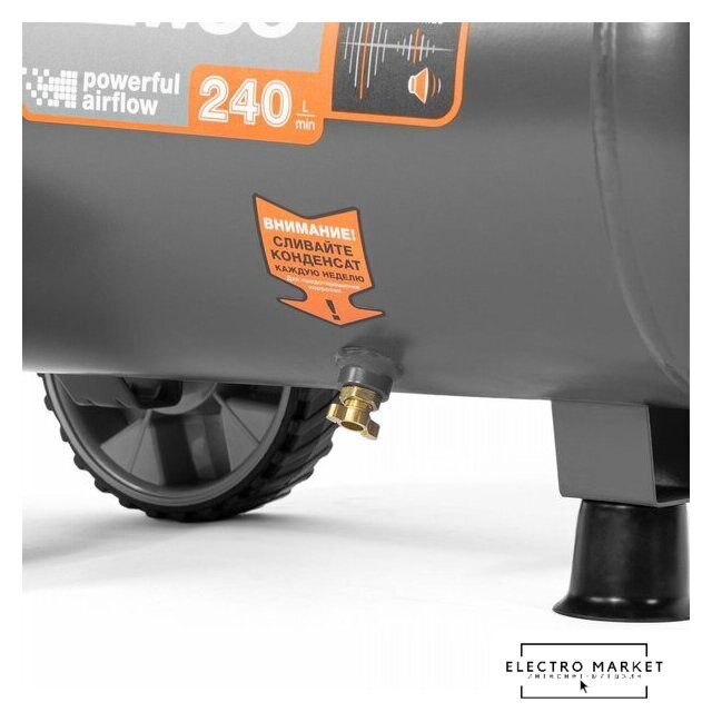 | Комплектация | КомпрессорВоздушный фильтр 2 штРезиновые опорыКолесо транспортировочное 2 штРуководство по эксплуатацииГарантийный талон |