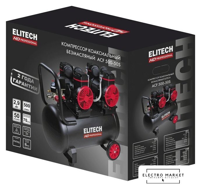 | Комплектация | - Компрессор,- фильтр воздушный - 4 шт.,- колесо с крепежом - 2 шт.,- опора резиновая с крепежом - 2 шт., паспорт - 1 шт. |