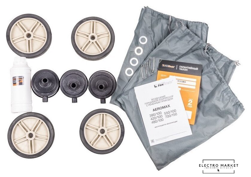 | Комплектация | - Компрессор- Колеса с комплектом для крепления - 4 шт.- Сапун масляного картера - 1 шт.- Воздушный фильтр - 3 шт.- U-образная ручка с комплектом для крепления - 1 шт.- Масло компрессорное VDL 100 в бутылке - 1 шт.- Инструкция по эксплуатации и гарантийный талон |