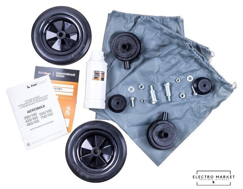 | Комплектация | - Компрессор- Колеса с комплектом для крепления- 2 шт.- Резиновая нижняя опора комплект для крепления нижней опоры - 2шт.- Сапун масляного картера - 1шт.- Воздушный фильтр - 2 шт.- Масло компрессорное VDL 100 в бутылке - 1шт.- L-образная ручка с комплектом для крепления ручки - 1шт.- Инструкция по эксплуатации + Гарантийный талон |
