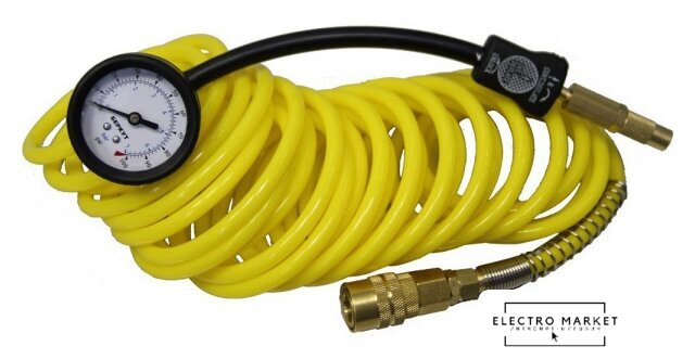 максимальное давление: 14 атм, непрерывная работа: 40 мин, длина шланга: 7.5 м, длина кабеля питания: 2.4 м
