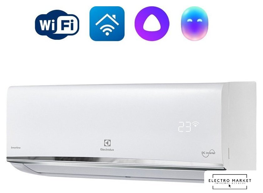 сплит-система, инвертор, мощность охлаждения 5.3 кВт, мощность обогрева 5.35 кВт, обслуживаемая площадь 50 м², шум 26 дБ, Wi-Fi: поддерживается, модуль приобретается отдельно, ионизатор, обеззараживание ультрафиолетом