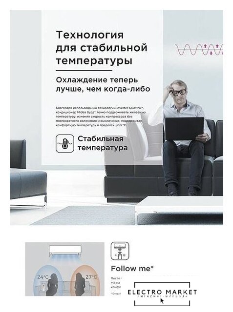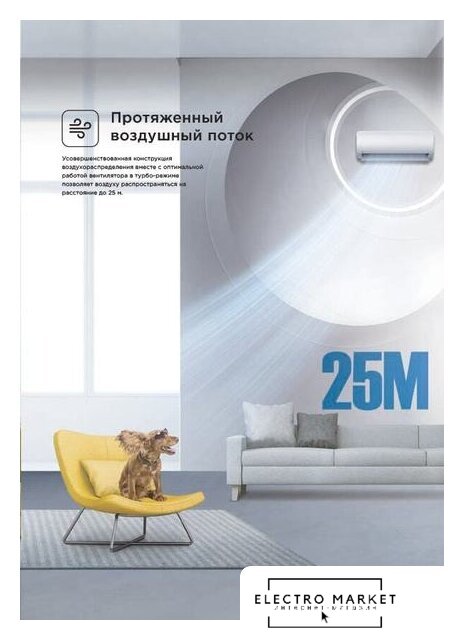 сплит-система, мощность охлаждения 7.1 кВт, мощность обогрева 7.4 кВт, обслуживаемая площадь 70 м², шум 26-41 дБ, Wi-Fi: поддерживается, модуль приобретается отдельно