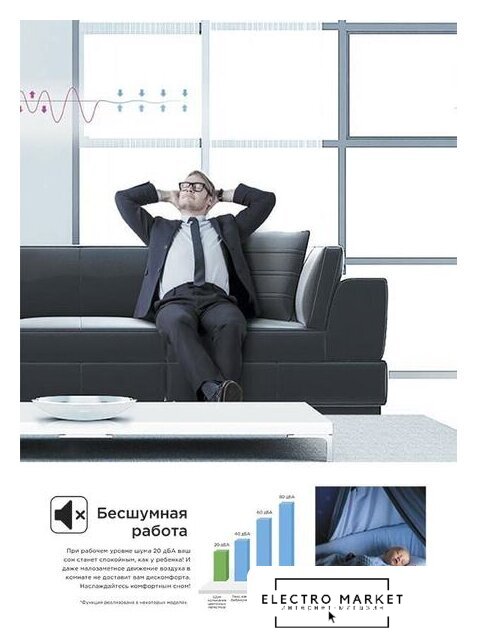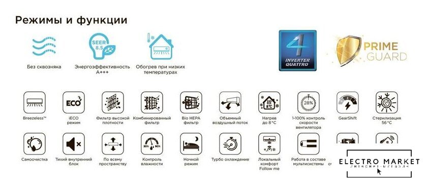 сплит-система, мощность охлаждения 4.95 кВт, мощность обогрева 5.16 кВт, обслуживаемая площадь 50 м², шум 34 дБ