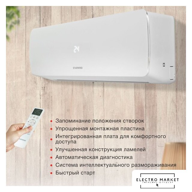 сплит-система, мощность охлаждения 2.05 кВт, мощность обогрева 2.2 кВт, обслуживаемая площадь 21 м², шум 24-34 дБ, Wi-Fi: нет