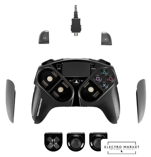 | Комплектация | 1 x геймпад eSwap Pro Controller2 x сменных модуля коротких мини-джойстиков2 x сменных модуля захватов2 x сменных триггера1 х сменный модуль 4-позиционного переключателя1 х кабель питания1 x отвертка для снятия модулей1 x маленькая коробка для хранения отвертки и кабеляКраткое руководство пользователя и информация о гарантии |