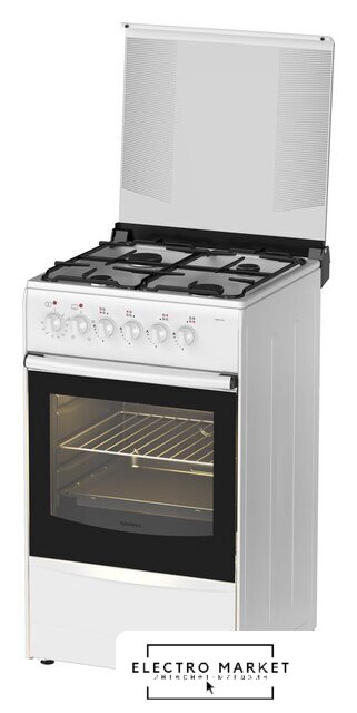 газовая панель + электрический духовой шкаф, поверхность: эмалированная сталь, управление механическое, без таймера, размеры (ШхГхВ): 50x60x85 см, цвет белый