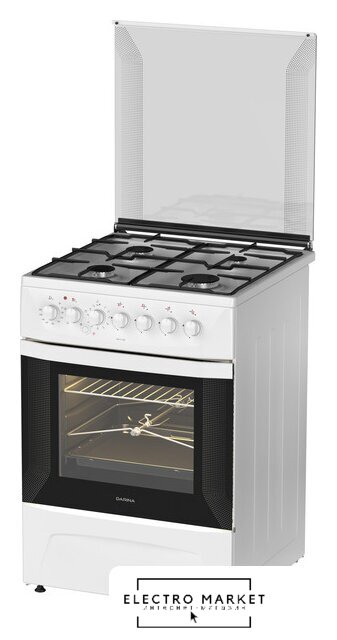 газовая панель + газовый духовой шкаф, газ-контроль конфорок, поверхность: эмалированная сталь, крышка из эмалированной стали, управление электронное, таймер электронный, размеры (ШхГхВ): 60x60x85 см, цвет белый